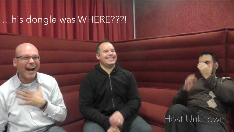 Last week we announced an impromptu caption for a picture taken of our three presenters during one of their planning sessions. We were inundated with entries, and not surprising since the prize is an exclusive Host Unknown gift!
